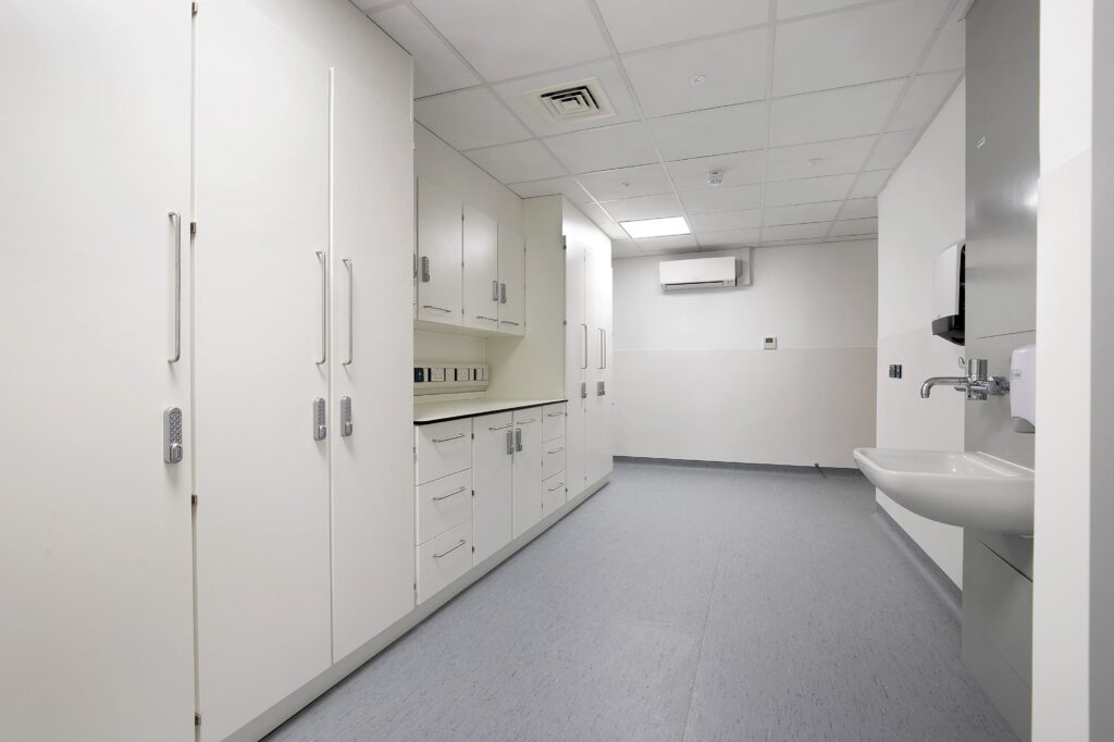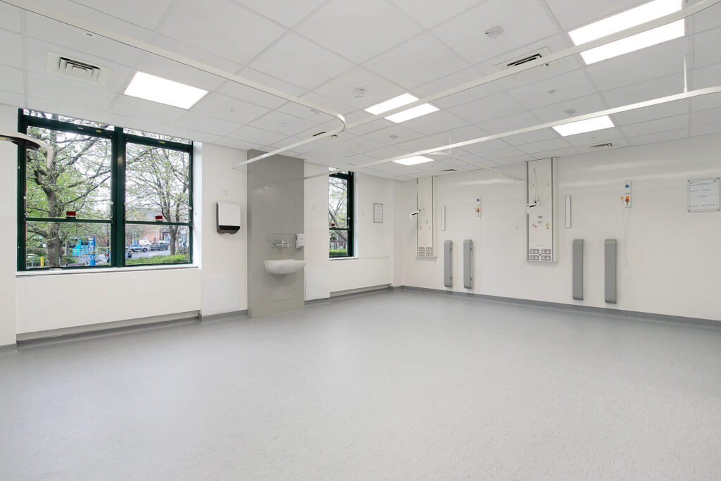 - Walls and partitions were reconfigured to suit the clinical layout, and specialist infection prevention measures were integrated throughout the design.