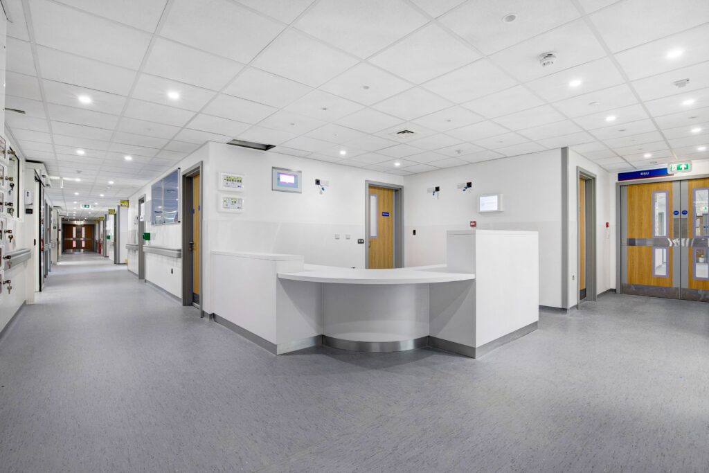 The works were delivered within a live hospital environment, directly adjacent to operational wards. This required:- Close coordination with clinical staff